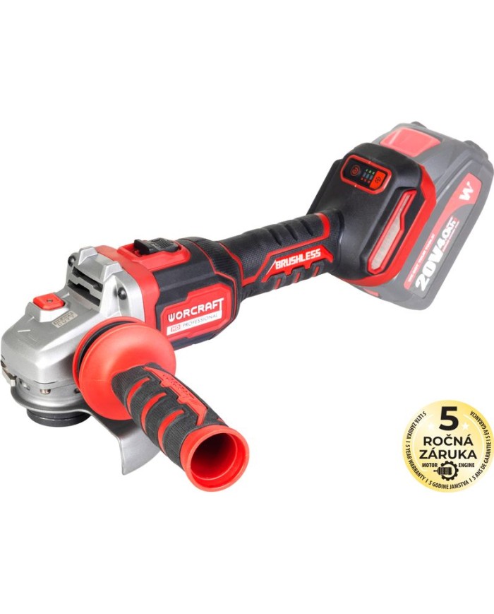 Brúska Worcraft CAG-S20LiBM 125 mm – akumulátorová uhlová (ShareSYS, 20 V Li-ion, bezuhlíková, 6-rýchlostná)
