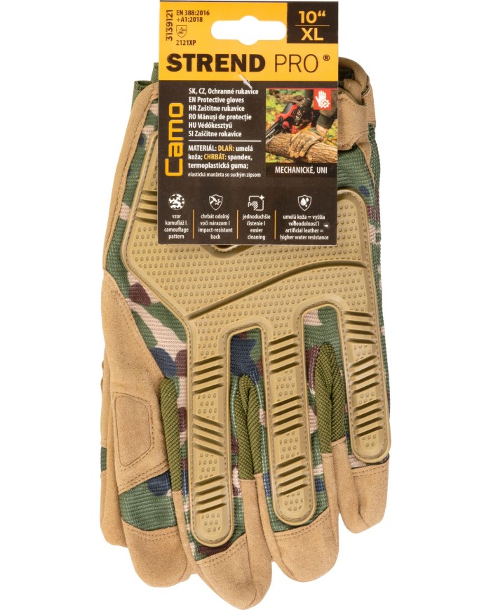 Pracovné rukavice Strend Pro Camo vo veľkosti 10/XL sú ideálnou voľbou pre každého, kto hľadá spoľahlivú ochranu a komfort pri práci. Kombinujú odolnosť s moderným maskáčovým dizajnom.