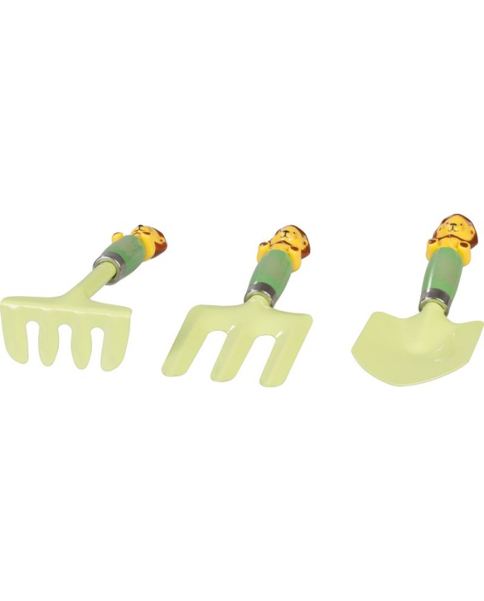 • 3-dielna sada: Obsahuje lopatku, hrable a vidly, základné nástroje prispôsobené pre detské ruky, čo umožňuje deťom aktívne sa podieľať na záhradných prácach.
