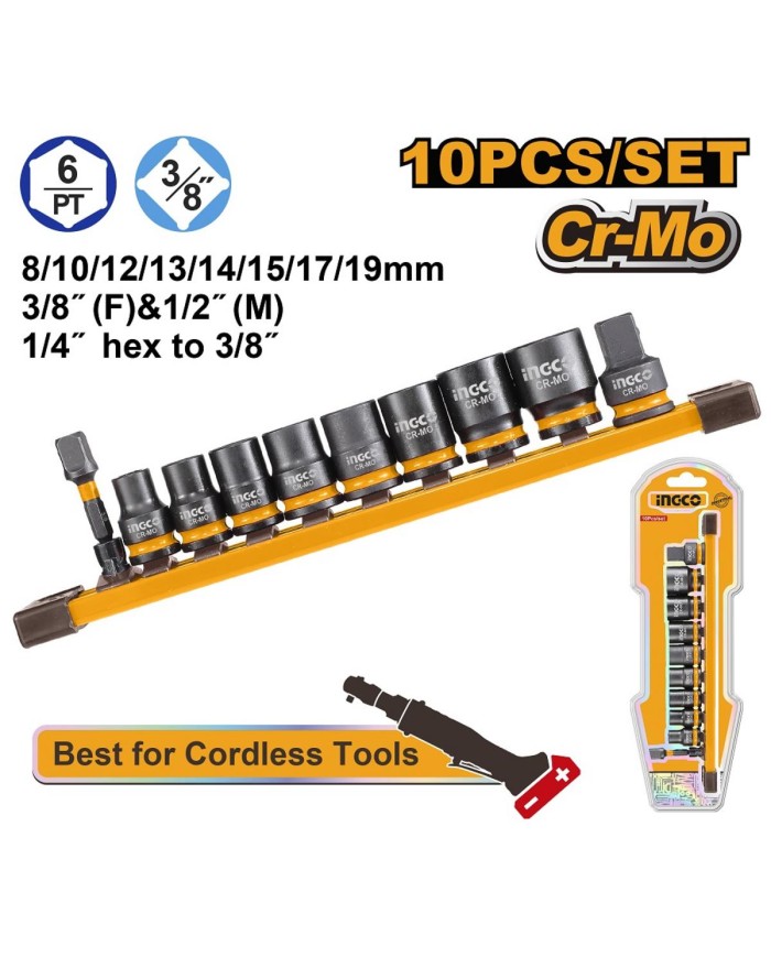 Gola sada 3/8" 10dielna, pre rázové uťahováky INGCO INDUSTRIAL