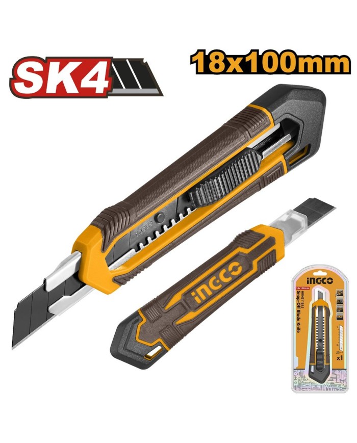 Nôž lamaci 18mm s tlačítkom, ergonomické telo INGCO 1x čepel