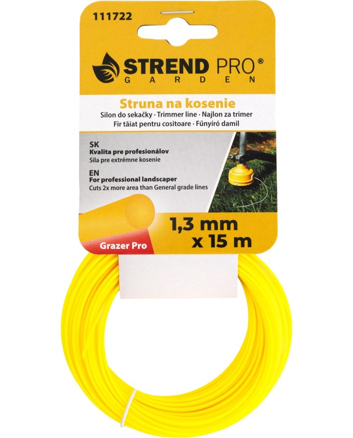 Okrúhly silon Grazer Pro by nemal chýbať vo výbave k vašej vyžínačke. Vysokokvalitný materiál je odolný proti roztrhnutiu, oderu a prehriatiu. Je vhodný na rýchle kosenie aj vyššej trávy. Jeho priemer je 1,3 mm a dĺžka je 15 m.