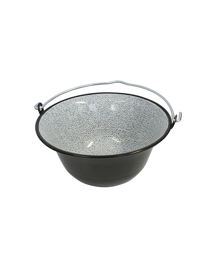 Kovový kotlík 6 lit, smaltovaný na guľáš s pozinkovaným kovovým držadlom. Vhodný na prípravu jedla pri táborení v prírode, pri vode alebo v domácnosti.