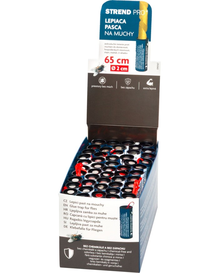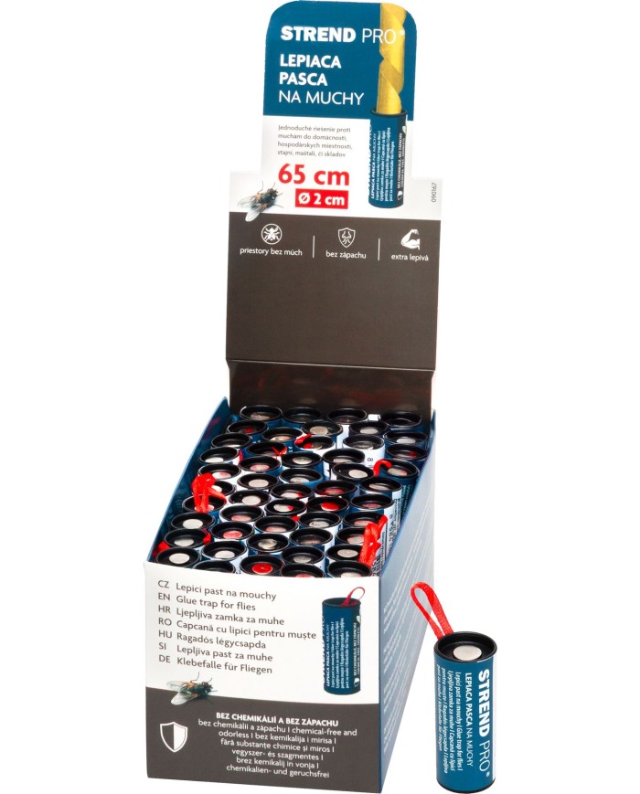 Mucholapka Strend Pro je účinná lepiaca pasca na muchy určená na použitie v domácnostiach, skladoch, hospodárskych budovách či prevádzkach.
