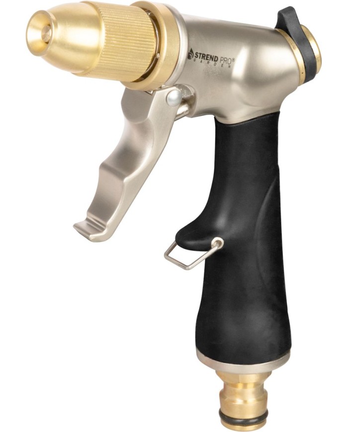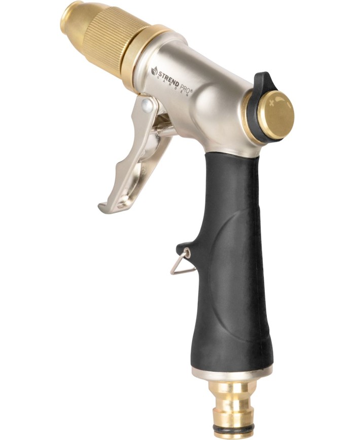 Zavlažovacia pištoľ Strend Pro Garden BJ4038T je kvalitná a odolná pomôcka na zavlažovanie záhrady, čistenie terás, chodníkov či záhradného náradia. Telo je vyrobené z kombinácie zinku a mosadze (Zn + Brass), čo zaručuje dlhú životnosť a spoľahlivosť.