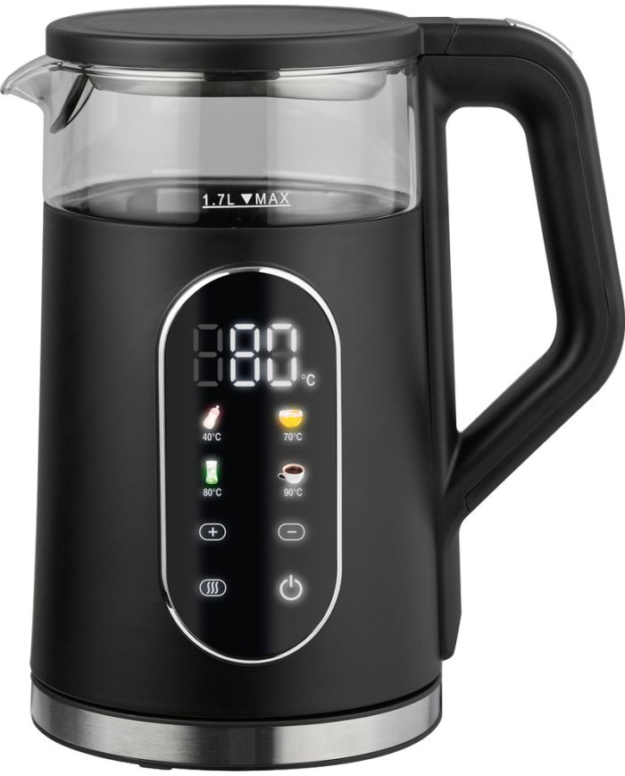 Moderná rýchlovarná kanvica MagicHome Kyra s objemom 1,7 litra je ideálnym pomocníkom do každej domácnosti. Umožňuje presné nastavenie teploty od 40 °C až do 100 °C, vďaka čomu je vhodná na prípravu čaju, kávy, detských nápojov či medových nápojov.