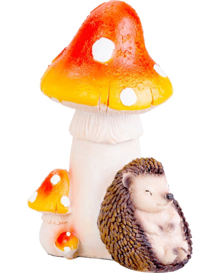 Dekorácia MagicHome Nature, Ježko pod hubou, polyresin, 13,3x11x19,2 cm