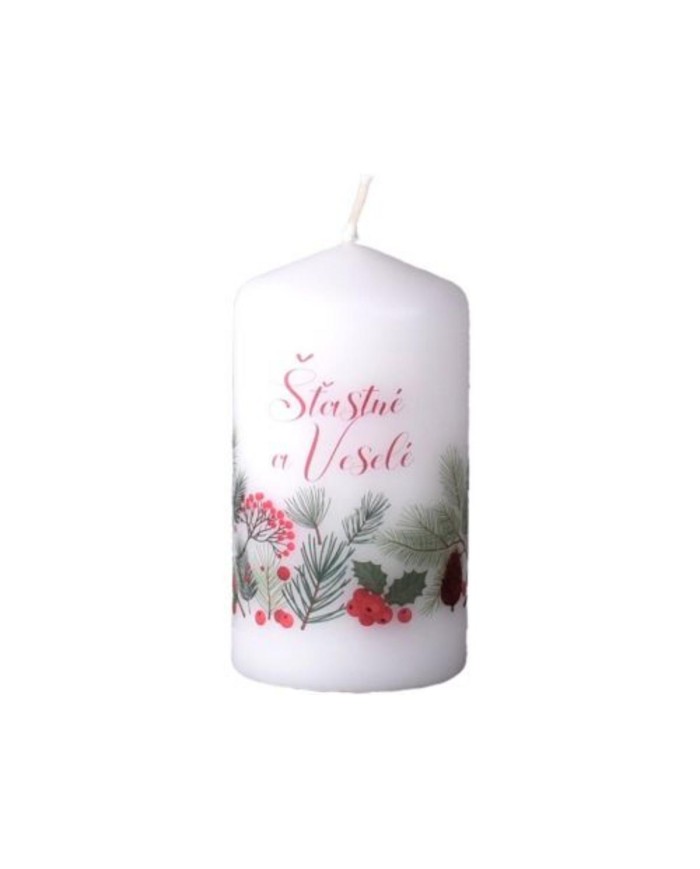 Sviečka valec Šťastné a Veselé, 60x120mm