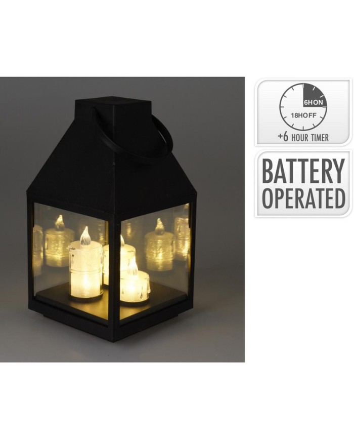 Lampáš svietnik s LED sviečkami, rozmer 25 cm, materiál plast/sklo, teplé biele LED svetlo, 3xAAA batérie (nie sú súčasťou), časovač 6/18 hodín