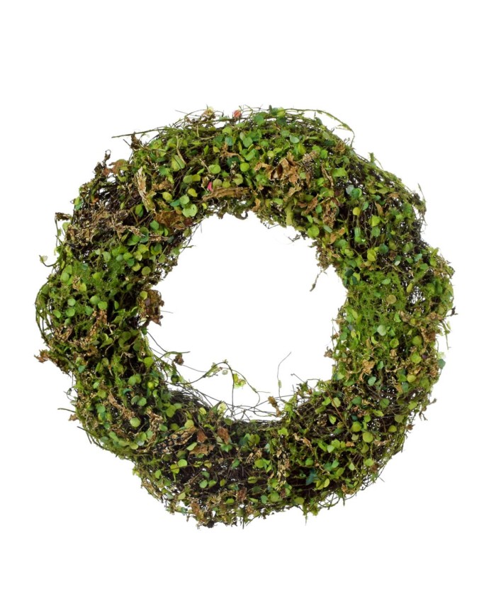veniec, priemer 30 cm, vhodný na dekorovanie, materiál ratan+mach, farba zelená