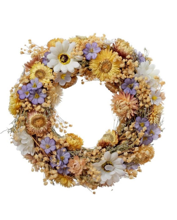 Veniec jarný závesný 25 cm fialový/žltý kvet prírodný