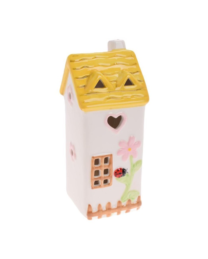 dekorácia domček LED, rozmery 7,4x7,1x17,5 cm, materiál dolomit, farba žltá