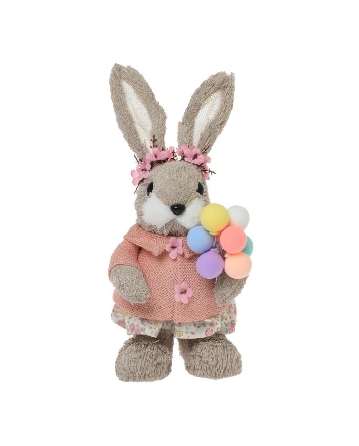 postavička zajačica s balónmi, rozmery 13x13x25 cm, materiál slama, ružová