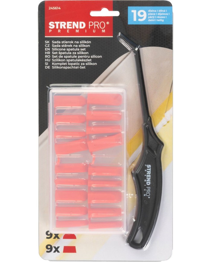 Praktická sada Strend Pro Premium je určená na jednoduché odstránenie a finálne tvarovanie silikónu alebo iných tesniacich hmôt v škárach. Vďaka výmenným nadstavcom ľahko vytvoríte čistý, rovnomerný spoj bez zbytočného neporiadku – ideálne do kúpeľne, kuchyne či okolo umývadla a vane.