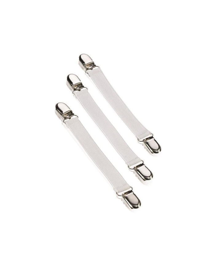Klipy na napínanie poťahu žehliacej dosky. Rozmery: 9x2x18 cm. Farba:biela;materiál:guma/kov.