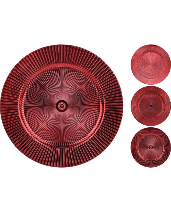 dekorácia tanier PP,rozmery 33x33x1,5cm, farba metalická červená, mix 3 dizajnov