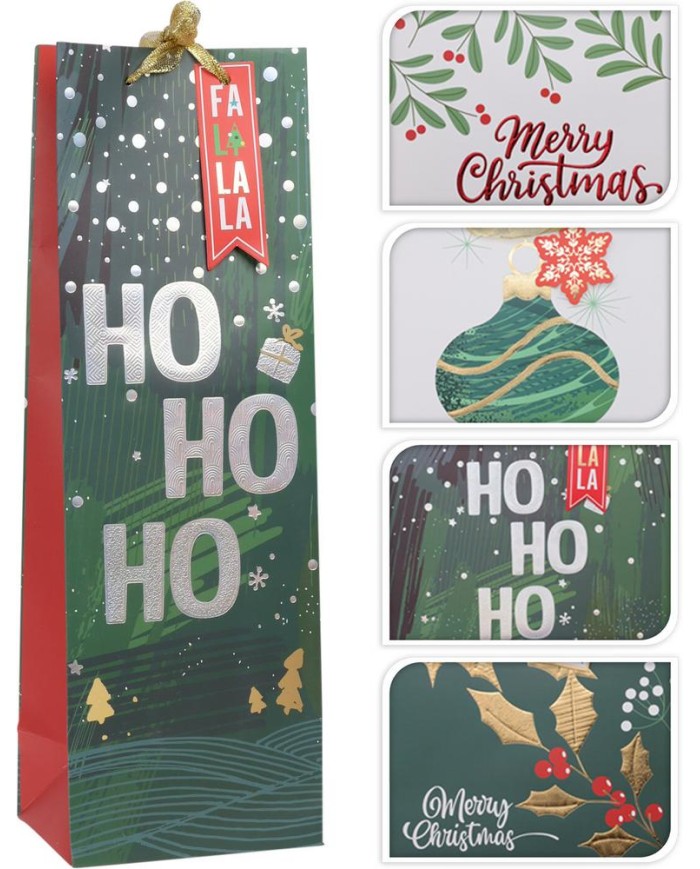 taška darčeková vianočná na víno, rozmery 36x12x9cm, mix