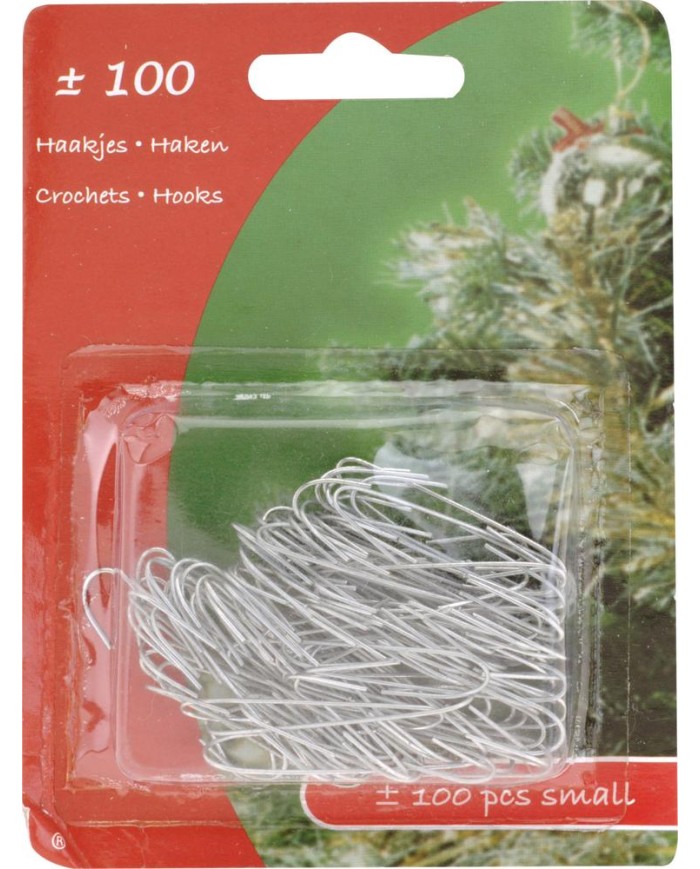 háčiky na vešanie ozdôb na vianočný stromček, materiál kov, dĺžka 3,6 cm, sada 100 ks, strieborné