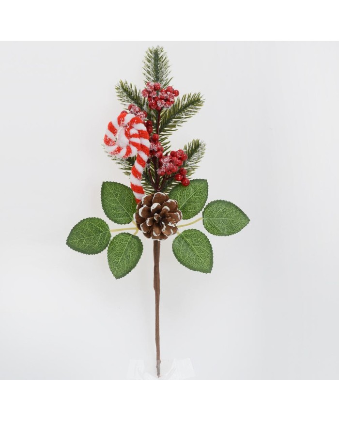 ozdoba zapichovacia, čečina+lízatko+šiška zasnežená+červené bobule, rozmer 29 cm