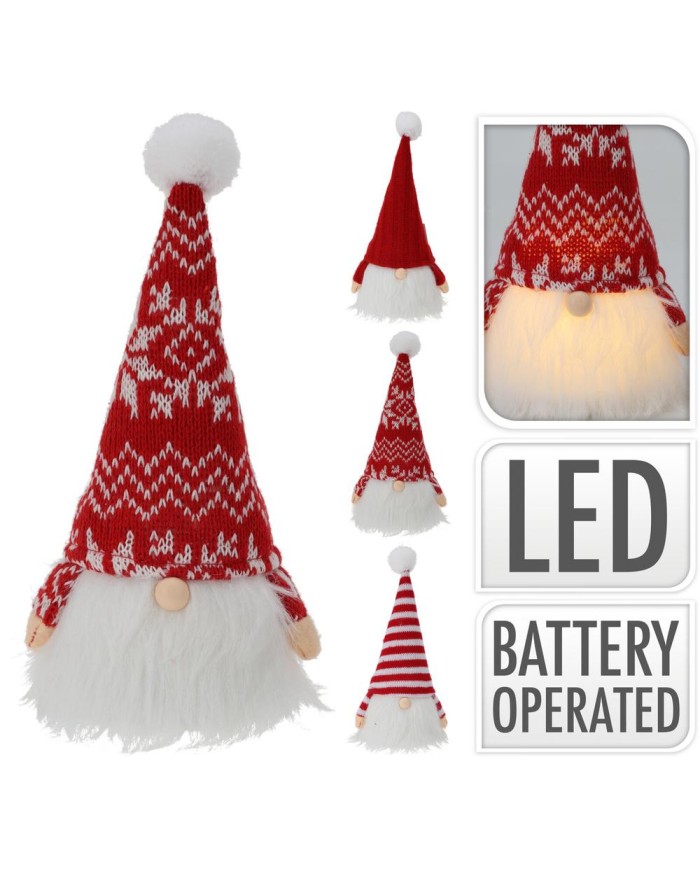 vianočná dekorácia, postavička, trpaslík, s LED svetlom, materiál textil, rozmer 9x9x23 cm, na batérie 1x CR2032 (súčasťou), mix