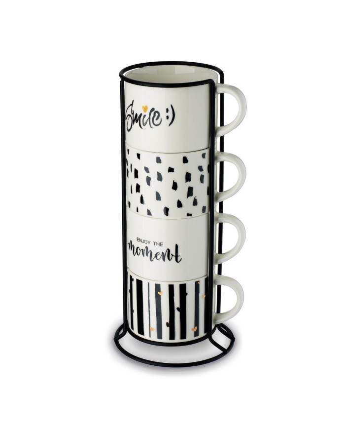 Sada porcelánových hrnčekov v stojane.