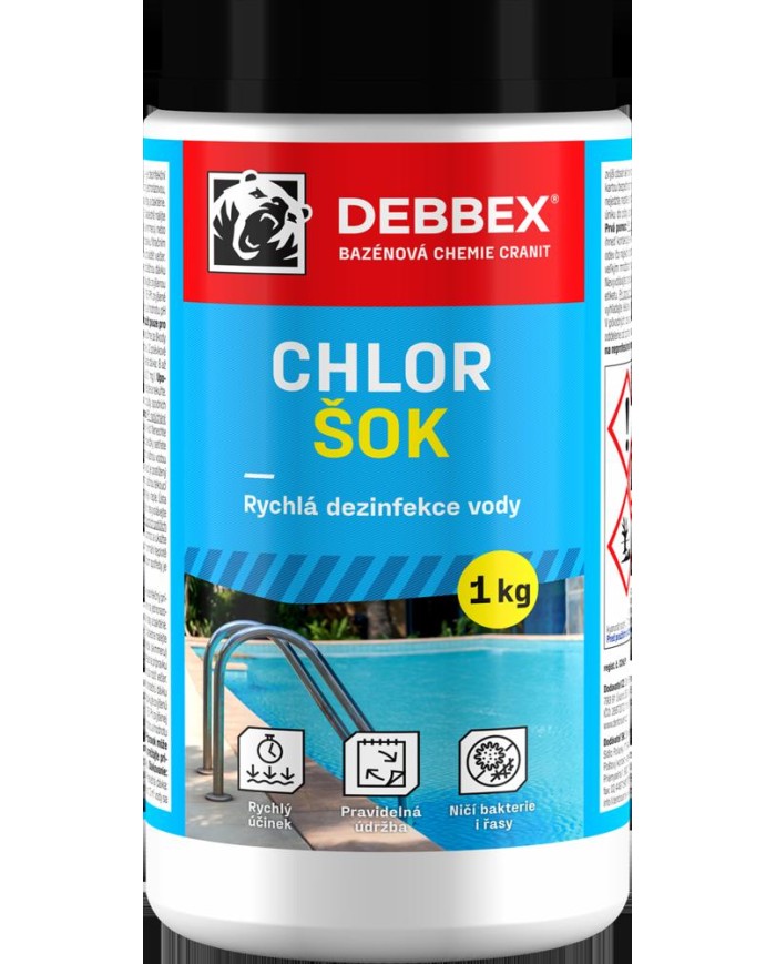 Dezinfekčný prípravok pre celosezónnu údržbu všetkých typov bazénov predovšetkým pre jednorazovú, teda „šokovú“ úpravu bazénovej vody po napustení alebo pri silnom znečistení. Likviduje riasy a baktérie. Použitím 1,8 g prípravku na 10 m3 vody sa zvýši obsah aktívneho chlóru o cca 0,1 mg/l.