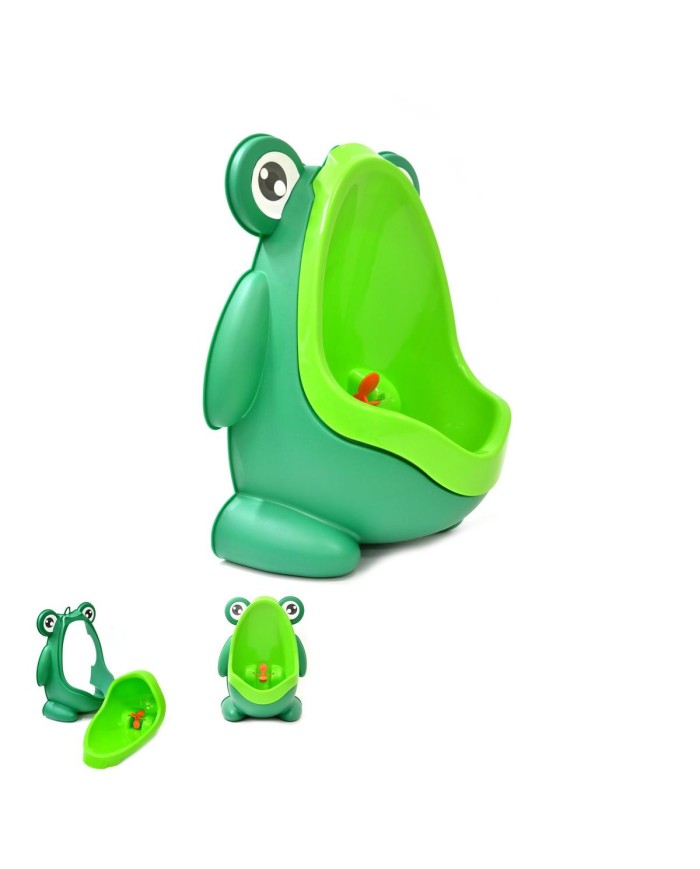 Detský pisoár v tvare žaby, hravý dizajn má pomôcť chlapčekom naučiť sa chodiť na malú potrebu v stoji. Vnútorná časť pisoára je vyberateľná,možnosť jednoduchého vyčistenia, rozmer: výška 30 cm, šírka 21 cm šírka, vyberateľná časť rozmer: výška 27cm, šírka 16cm, možnosť pripevnenie pisoára pomocou prísaviek aj na zavesenie.