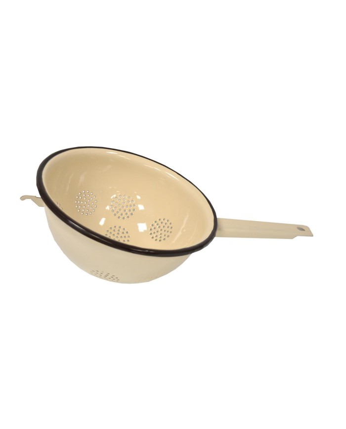 Smaltovaný cedník s dlhou rúčkou, priemer 20 cm, farba béžová, smaltované sitko
