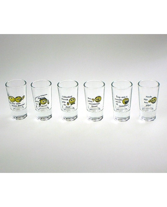 sklenené, objem 25 ml, sada 6 ks, s textom, dekor smajlík