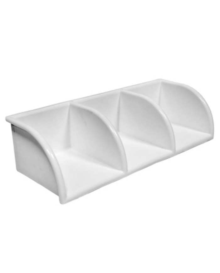 Plastová 3-dielna polička do kúpelne. Po dĺžke je predelená na 3 časti. Má oblúkový tvar. Rozmery má 52x20,5x14 cm. Farbu má bielu., ,