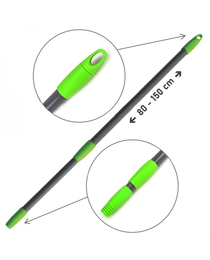 kovová poplastovaná teleskopická násada s plastovým závitom, dĺžka 80-150 cm, s uškom na zavesenie