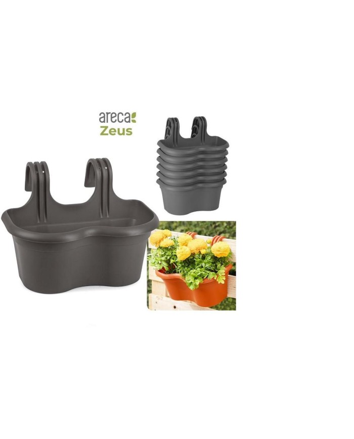 Kvetináč na balkón ZEUS antracit, plastový 37 x 29 x 25,5cm, má otvory na pripevnenie k balkónu drôtom