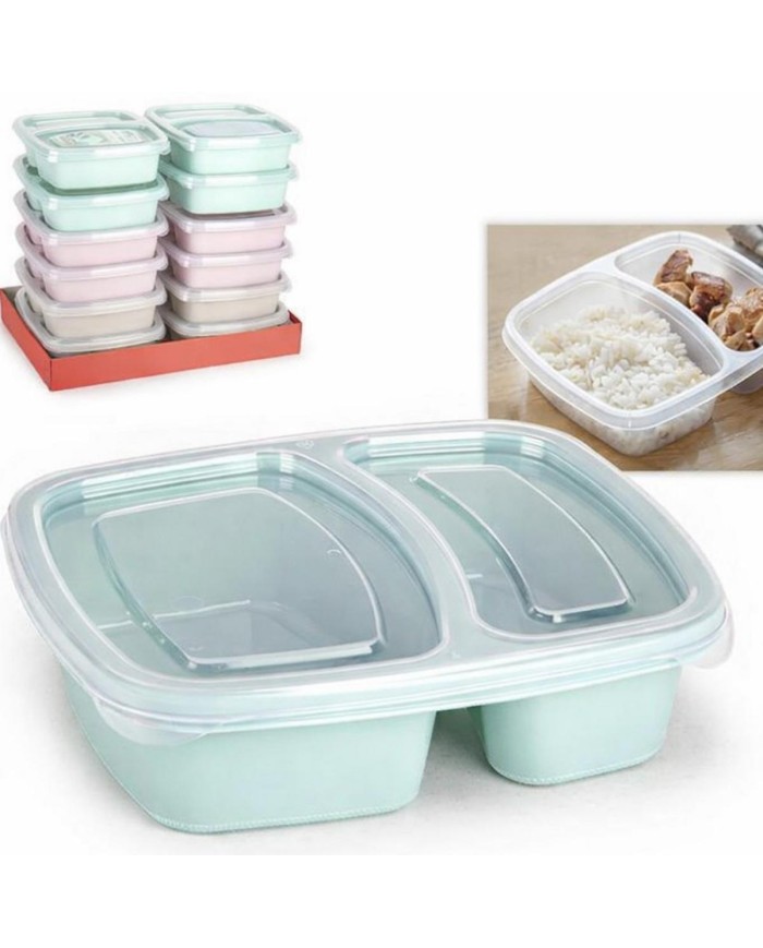 Dóza na obed, objem 725ml, materiál plast PP, 2 priehradky na hlavné jedlo a a prílohu, mix pastelových farieb: zelená, ružová, hnedá