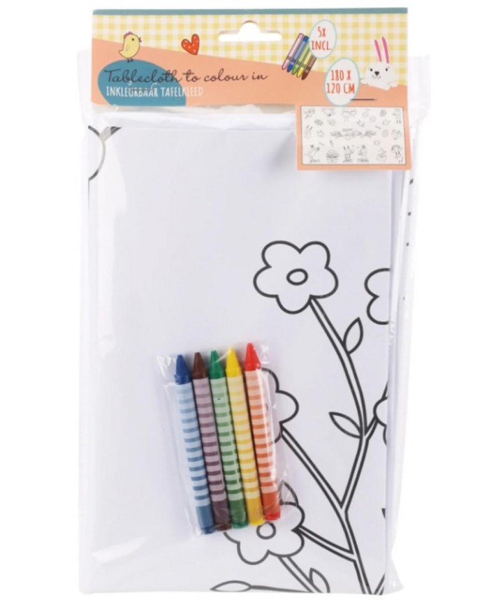 Obrus určený na vyfarbovanie. Zábava pre deti aj dospelých. V balení je obrus 180x120 cm a 5 farbičiek.
