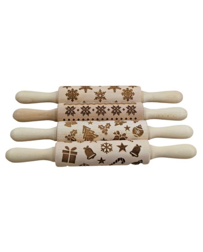 Valček na cesto drevený 33cm s gravírovaným vzorom vianoce