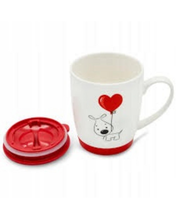 Hrnček porcelánový s uzáverom 350ml, valentínsky dekor