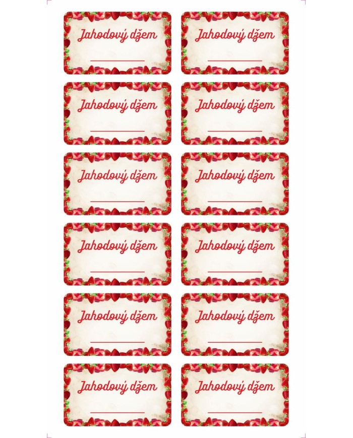 Samolepka na fľašu JAHODOVÝ DŽEM domáci 24 ks etikiet