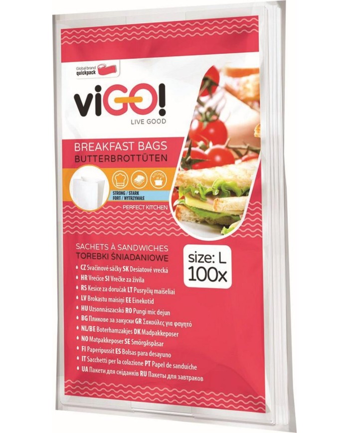 Ideálne papierové vrecká na desiatu - 100 kusov v balení. Vrecká sú voskované, takže sú odolné voči mastnote. Rozmery - 22x19cm.