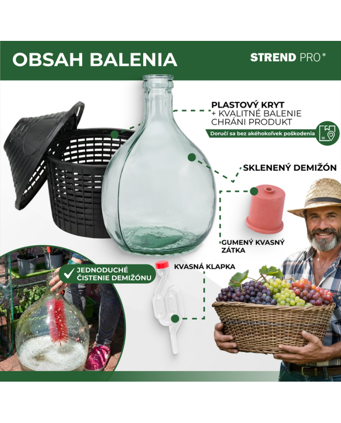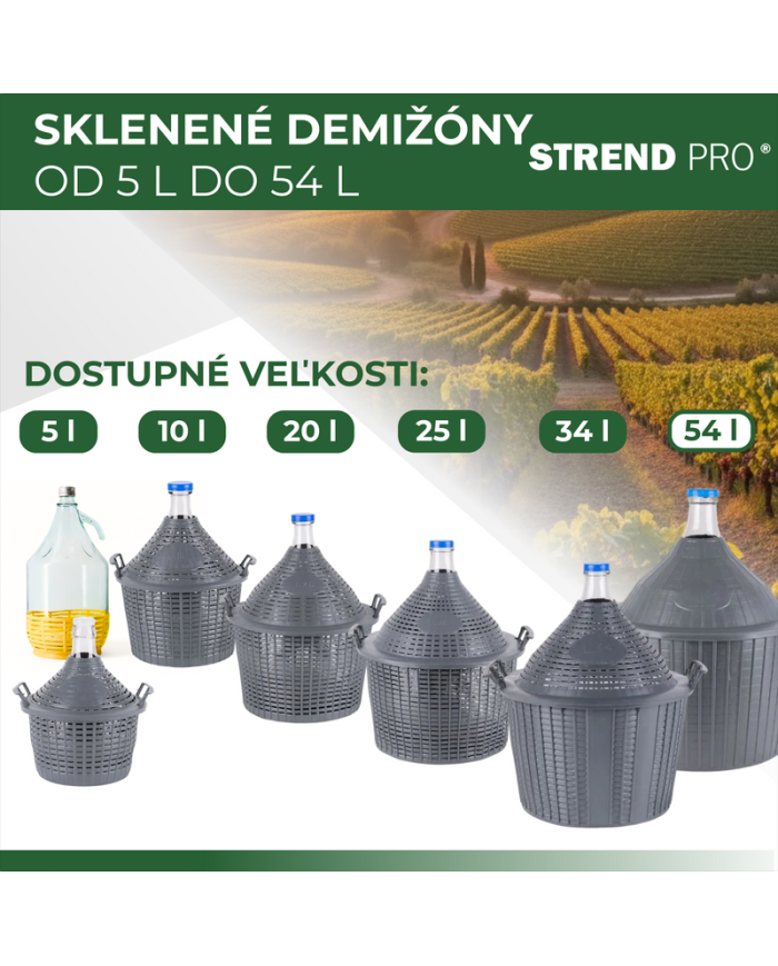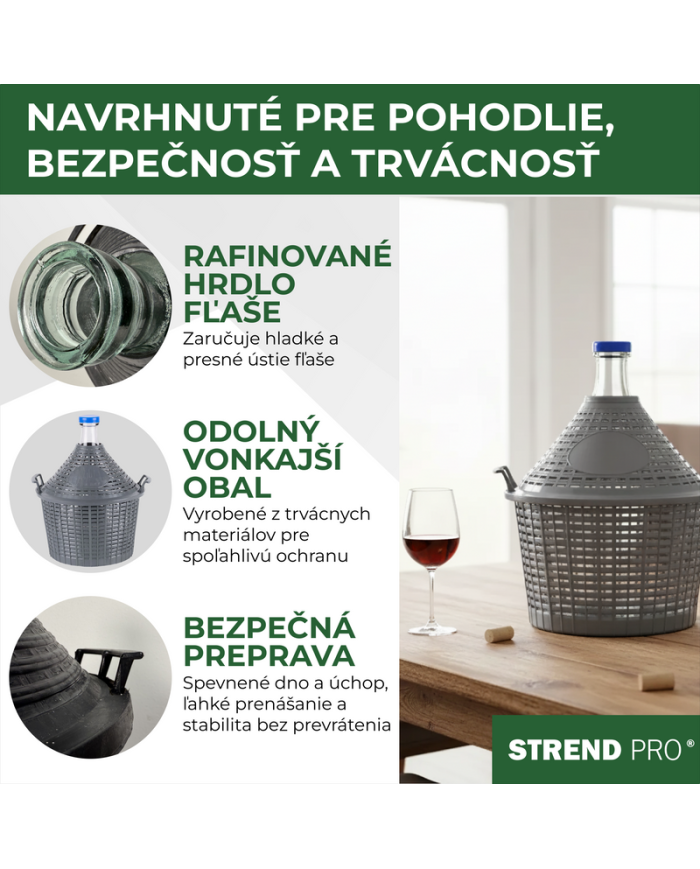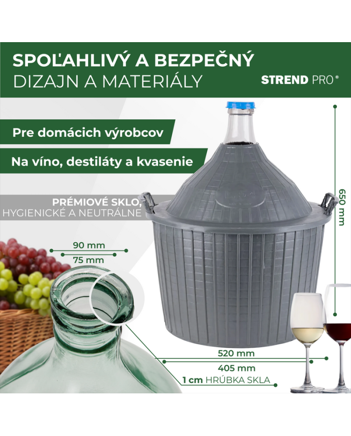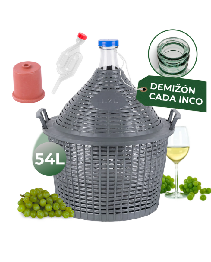 Demižón Strend Pro Cada Inco, 54 lit. sklenený, demižón na víno a pálenku, plastový kryt
