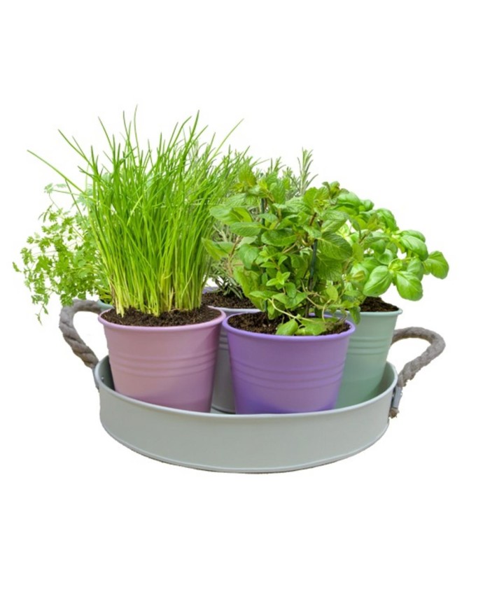 Balenie obsahuje 7 bylín- koriander, bazalku, oregano, tymián, petržlen, pažítku a mätu. V balení sa nachádza aj 5 diskov substrátu na sadenie. Po zaliatí vodou dostanete dostatok substrátu na naplnenie siedmych kvetináčov..