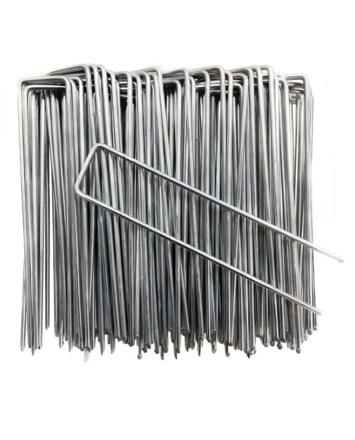 kovový dvojitý kolík na prichytenie fólii, netkaných textílii a krytov rastlín k zemi, rozmer 4x15cm