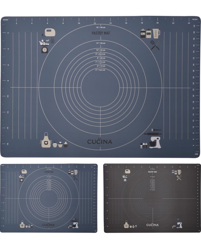 podložka na cesto z flexibilného PP materiálu, vhodná pre styk s potravinami, rozmer 45x65cm, hrúbka 0,7mm, mix 2 farieb (modrá, šedá)
