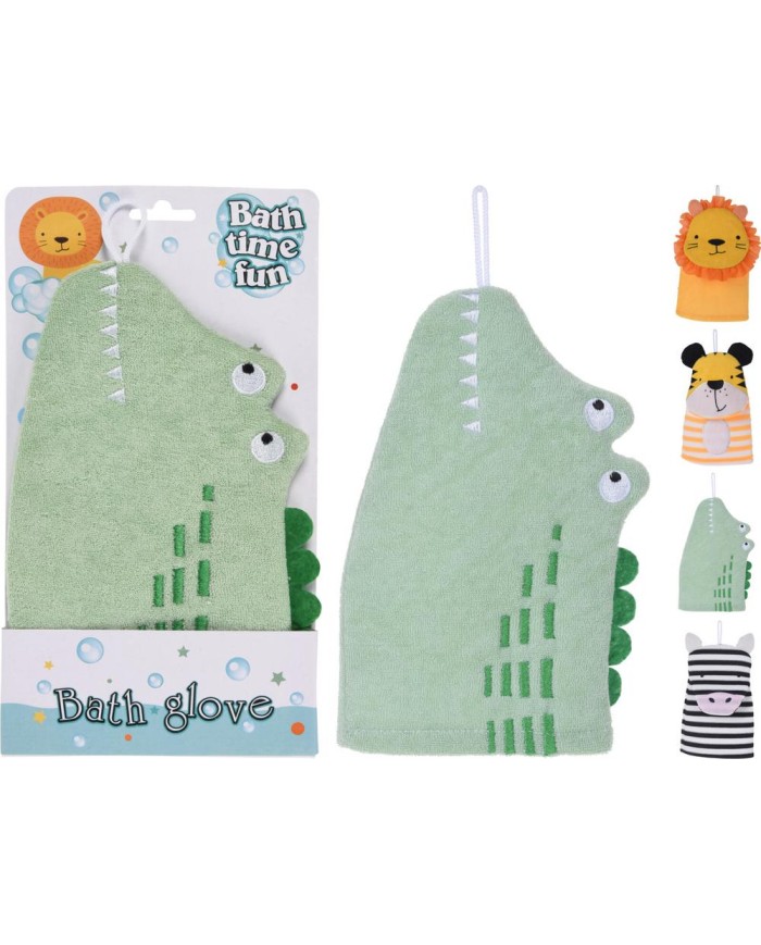 Utierka na umývanie, kúpeľňová, polyester, rozmer 14x24cm, mix 4 zvieracích dizajnov (zebra/lev/krokodíl/tiger), detská kolekcia, so šnúrkou na zavesenie