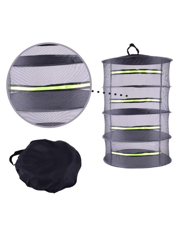 sieť na sušenie húb a byliniek kruhového tvaru o priemere 58cm, celková plocha viac ako 1m2, sieť obsahuje 4 poschodia, výška cca 80cm, je z bokov uzavretá, vpredu je kryta otvorom so zipsom proti hmyzu, je ju možné používať v interiéri ako aj v krytom exteriéri. veľmi jedoduchá manipulácia a praktický obal na zips uľahčuje sušenie húb a bylín prirodzenou cestou.