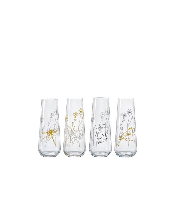 Súprava 4 ks pohárov na sekt a prosecco 250 ml vyrobené z kvalitného českého krištáľového skla. Sada obsahuje poháre so 4 rôznymi dekormi.