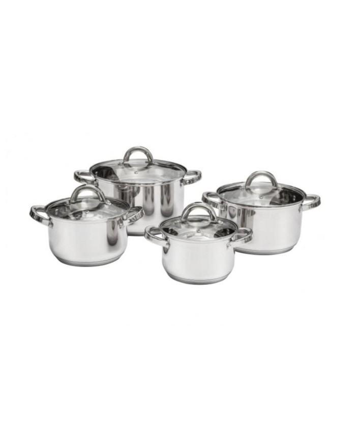 nerezová sada hrncov, 8-dielna, objem hrncov 1,9/2,5/3,5/6,1 l, priemer 16/18/20/24 cm, sklenené pokrievky, aj na indukciu