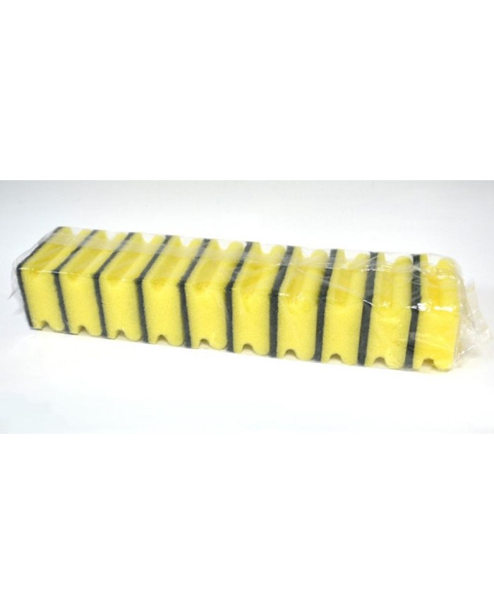 Hubky na riad Profil. Vyrobené z polypropylénu. Z jednej strany majú pevnú brúsnu vrstvu odolnú proti opotrebeniu. Po bokoch tvarovaná pre lepšie držanie. Praktická sada 10 ks. Vhodné na umývanie riadu a iné čistiace aktivity. Využitie v celej domácnosti. Farba žltá. Rozmery 8x5,5 cm.