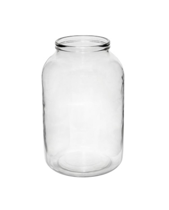 sklenený, rozmery h: 25 cm, d: 15 cm, hrdlo priemer 10 cm, objem 3,68 l, bez závitu, zatváranie viečkami PANO hlavicou