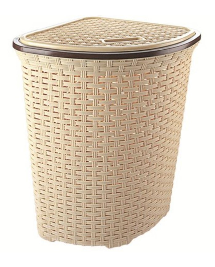 plastový kôš na špinavé prádlo, rohový, imitácia ratan, rozmer 40x40 cm, poloblúk, výška 58 cm, béžová farba s hnedou obrubou